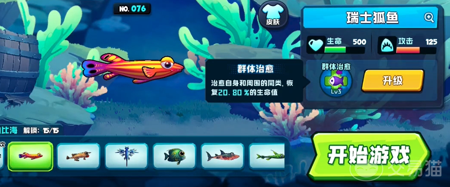 瑞士狐鱼:这只鱼是非常团队的存在,在一些组队模式中其作用非常拔群,因为可以恢复周围同类的血量,而且回复数值达到了足足20.80%,所以队伍中有它的情况下,每一个队友都会变得更加安心。