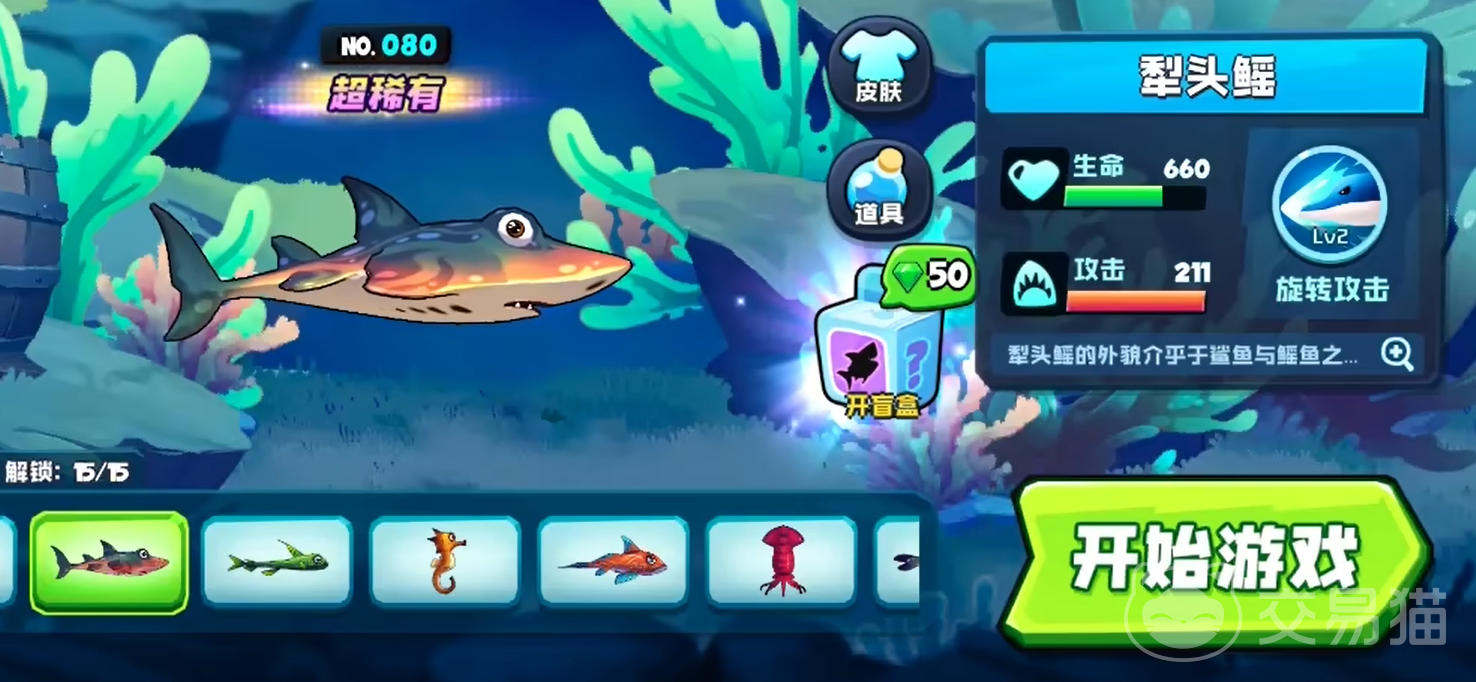 犁头鳐:这只鱼是一只超稀有的存在,而且属于后期加勒比海域中才能找到的品种,单论获取难度就已经相当的不容易,所以其强度也是非常有保障的,高达211的攻击对比其他一众攻击鱼来说可以算得上冠绝群雄,另外它的技能也相当厉害。