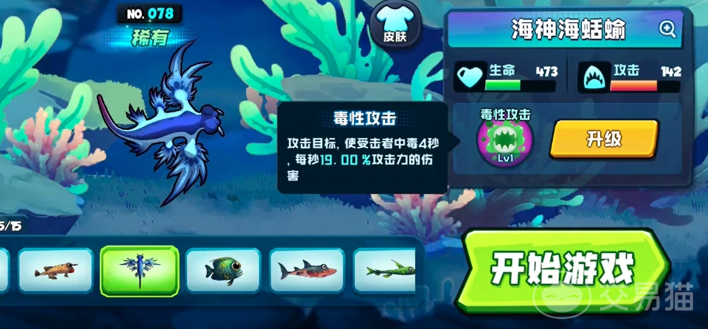 海神海蛞蝓:这只鱼属于稀有品质的存在,两项属性都没有特别突出,不过技能的强度非常明显,在打持久战的时候会有不俗的发挥,因为它可以让目标中毒,从而在四秒内持续扣血,这对于部分依赖于自身续航的鱼类是非常克制的,可以打乱它们苟的计划。