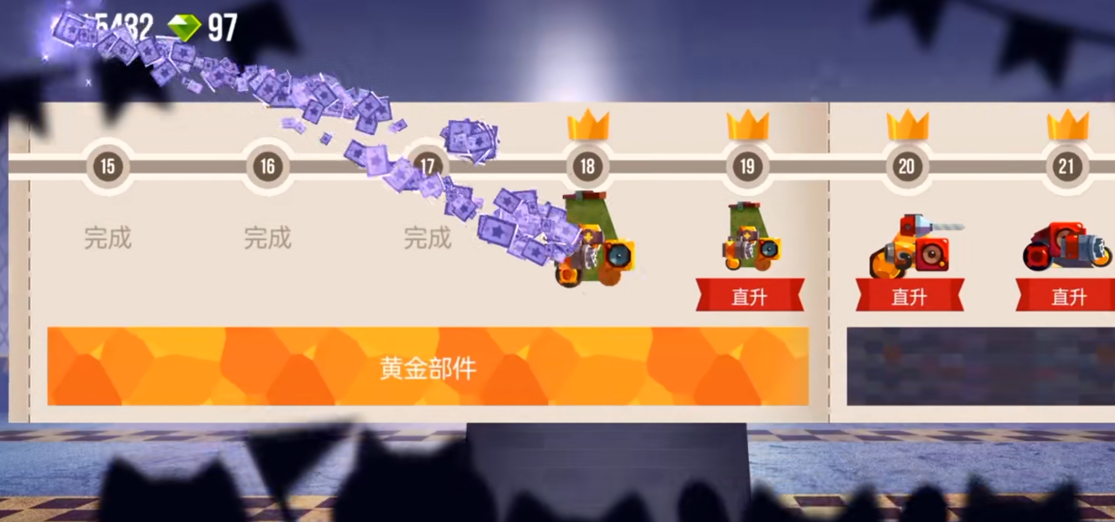 在玩法战斗方面是以锦标赛和快速战斗两种模式为主,快速战斗就是能够在10秒一局的战斗之中连续赢得三次比赛,就能解锁一个宝箱获得一部分的配件。锦标赛就是由15名玩家组队参与排位赛,只要能够连续赢得14次比赛就能晋级段位,段位越高所能解锁的配件就越好,特别是达到25级之后就可转生重新开始解锁更多全新的配件。