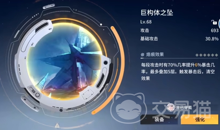 其次就是一个叫做巨构体之坠的烙痕,这个烙痕其实也是比较多角色可以搭配使用的,比如说言、野马或者是莱蔻莎这几个角色都是适配的,这个烙痕的效果相对来说提升的没有上面那么明显,但是在适配度上面很高,很多的角色都是可以使用的,所以前期培养用到的几率很高。