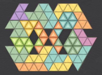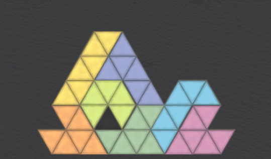 因为游戏的关卡是积分制的,所以需要大家一关一关的过,首先是前往车站的道路,这里的拼图很简单,是一个标准的等边三角形,每条边由三个小三角形组成,然后左边中间的三角形左边紧贴着一个小三角形。