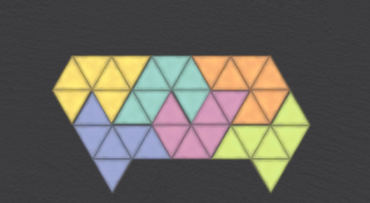 第六个是隐藏关卡,这一关的难度会高一些,小编大致把它分为了两个部分,第一个部分大家需要先放置橙红色,基本都是在中间的位置,然后再去填满边缘其他的格子。
