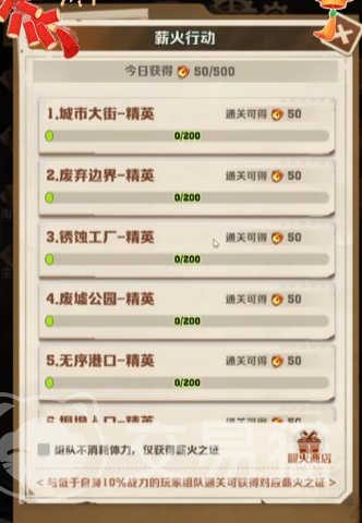 从数量上来看薪火任务需要打到的僵尸也不少,所以建议玩家有一定等级,或是已经合成了可以快速清理僵尸的多重技能再来挑战薪火任务,但值得庆幸的是,这款薪火各种关卡的游戏进入都不需要消耗体力点数,而且玩家组队完成就可以获得薪火之证,另外,如果和自己的战力相差10%的玩家组队,通关后就可以获得对应的薪火之证了。
