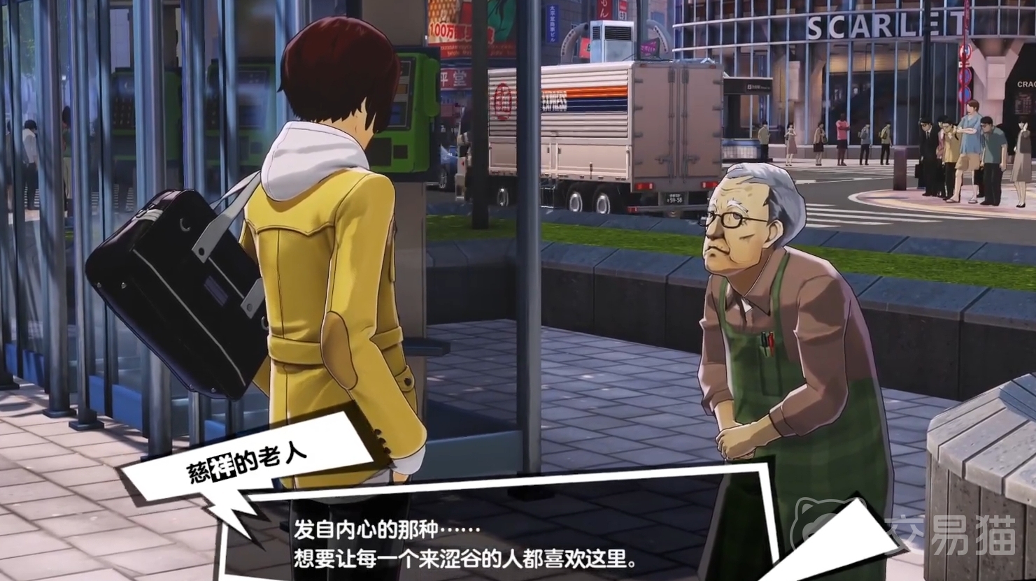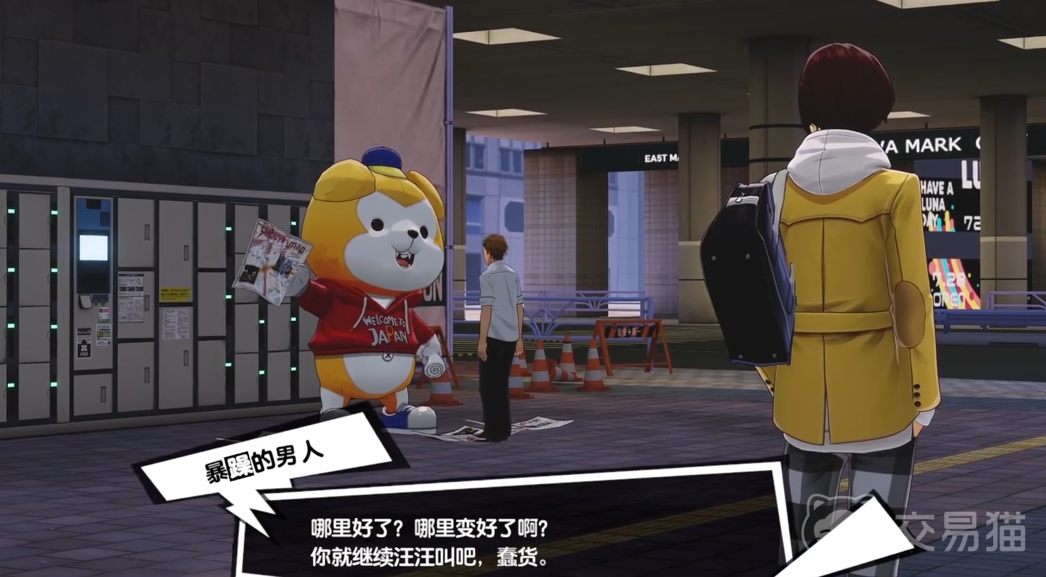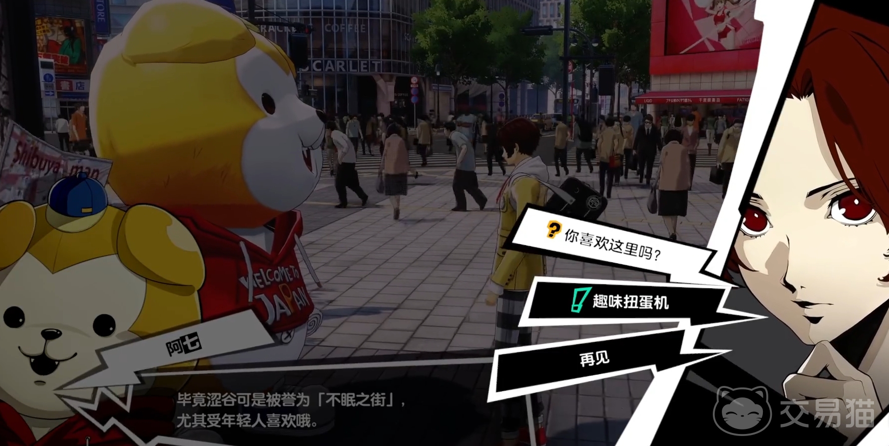 那么首先便是任务的触发地点在涉谷的站前广场上,我们可以在一个地图告示牌面前看到这个名为阿七的吉祥物,其自称为涉谷的阿七。与他进一步对话之后就可以触发他的支线任务了,之后可以按照提示在附近的商店进行询问,了解发生了什么事。