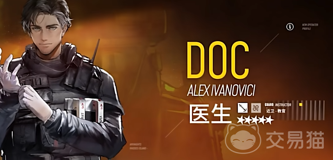 医生的资料并非很多,我们只知道他在原先的特种部队之中担任的职位便是医生,所以才会使用医生这个称呼。在目前公布的资料来看,他是属于近卫职业下分支的教官,教官这个分支最大的特点便是可以攻击到自身两格外的敌人,同时在攻击自己没有阻挡的敌人的时候攻击力会得到提升。