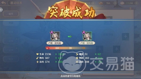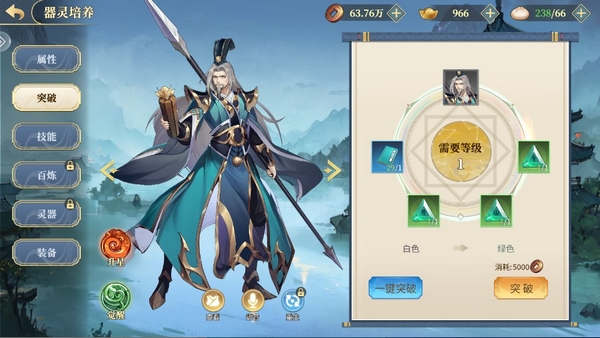突破主要带来器灵速度、物防、法防的提升,当然角色战力也会随着提升。随着突破的提升,所需要的材料数量和突破的价格也都随之上涨,不过好在可以扫荡,所以只要体力够的话,材料这一块基本是不太缺的。