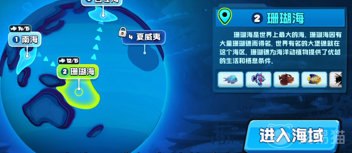今天小编为大家带来的是鱼吃鱼游戏珊瑚海图鉴大全,给各位刚刚解锁了第二海域——珊瑚海的小伙伴们详细介绍一下该海域内的全部鱼种信息,帮助大家能在前期资源比较紧张的情况下快速选择到更加适合自己的鱼进行培养,避免资源的浪费,有兴趣的小伙伴赶紧来看看吧!