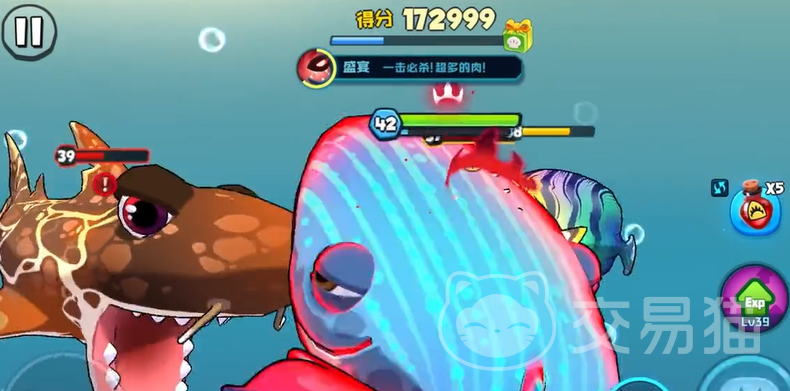 在攻击的时候,大家可以选择使用蓝鲸的【成长】技能,这个技能算是十分无敌的技能了,大家在攻击敌人的时候,可以获得双倍的经验值,当然了,由于蓝鲸的群体特殊性,在游戏中属于中立类的,所以大家在对战过程中,如果遇到不同的鱼类,等级比蓝鲸高的话,都是可以对蓝鲸发起攻击的,这是一个比价大的确定,前期的话,就更加的注重于发育成长了,给大家一个小提示,蓝鲸在加速过程中,是比其他的鱼类要快的,初期就在水底发育等待秘宝刷新就可以了!
