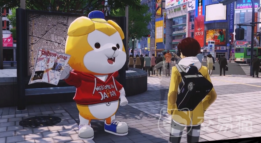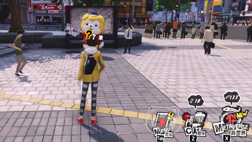 这个支线其实是不太好触发的,一般大家走过任务地点的时候可能就直接略过这个地方了,首先需要大家来到站前广场上面,这里大家可以看到一个广告牌,旁边站着的一个玩偶就叫做阿七,这个地方大家可能就会忽略掉,很多玩家不会去找它对话。
