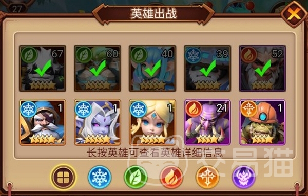 前期大家要多多利用这个英雄重置选项来给自己搭配一个合适的阵容,基本上可以围绕着前排抗伤害,后排输出,然后辅以一些治疗、增益、减益、控制类的角色。