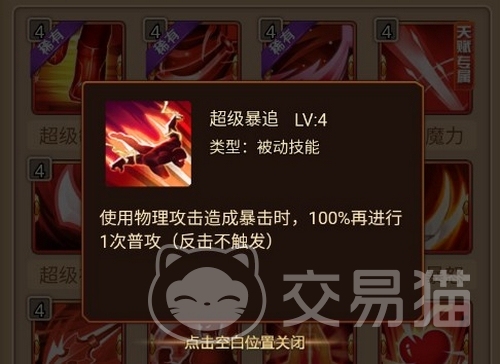 以大家比较熟悉的齐天大圣为例,这是一个高攻高暴的单体输出英雄,还有连击,纹章方面就可以给他配加攻击属性纹章,天赋方面选择“超级物连”,让物攻有50%的概率触发连击,虽然伤害、控制率都只有原先的一半,但仍不失为非常有用的纹章。当然,也可以使用“超级暴追”,只要打出暴击就可以100%追加一次普攻。