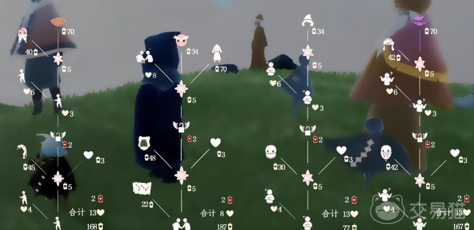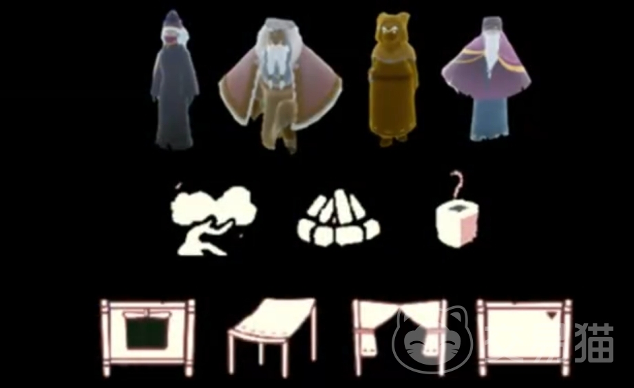 第二个是我们露营日活动附带的集体服装复刻,总共四位先祖。每一件服装样貌都非常具有特点,好看的不少,甚至于其中有不少只复刻过一次,这对于部分玩家们的蜡烛和爱心是一个不小的挑战。