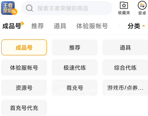 在平台上大家可以找到大量的王者账号,对于这些账号平台还设置了专门的分区,大家只需要搜索游戏名称就会来到游戏专区,在专区里不同的账号也进行了更细致的分类,大家可以根据自己的需求快速找到对应的游戏账号,比如成品号、首充号等等。