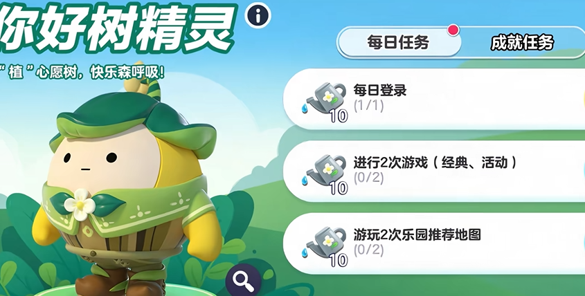 蛋仔派对植树节给玩家们准备好了大量的活动,小伙伴们可以在活动页面【你好树精灵】中,去参加本次的活动,玩家每天可以通过完成上面的每日任务要求和成就任务来获得一些奖励!完成后是可以获得水壶的,水壶则是为了让大家去养大活动中的树木!