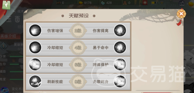 至于天赋加点方面的设置,这倒是没有什么给小伙伴们说的,因为每一场游戏都可以自己进行加点,大家可以根据自己的实际情况去选择适合的点数,这里的天赋设定有包括增加伤害,提高伤害,减少冷却,还有提高命中率的,也有能够刷新技能的,看小伙伴们喜欢哪一种操作形式了。
