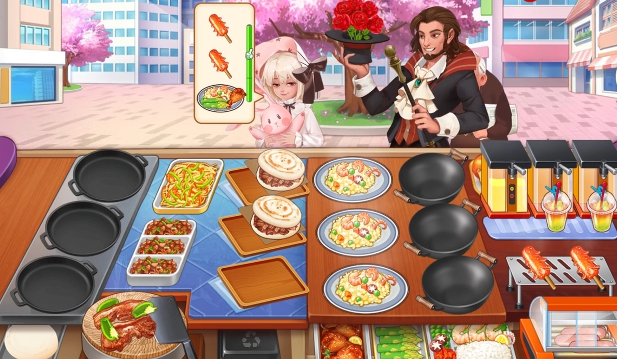 这是个人非常喜欢的一个店铺之一,光是肉夹馍制作方面相对简单,而且材料方也容易制作。另外玩家们还需要应对顾客的要求,额外上炒饭以及我们的饮料,小吃零嘴等其他食品。当然主营还是肉夹馍,非常推荐试一试。