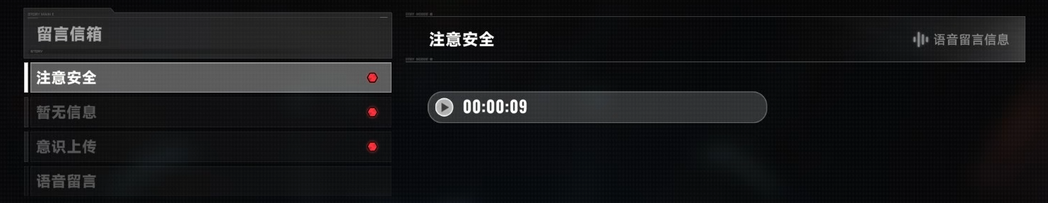 在这么选择后,当大家完成了第6次的意识上传,在来到信息菜单后就会看到三条语音留言,在看到留言后大家需要依次打开留言听完,并且回复留言。在回复完成后大家会再次进行一次意识传送。在这次传送中大家需要解锁额外两个事象,这两个分别是另一个身份和首次谈话,在解锁了这两者以后这次意识传送就会结束。在结束后,大家会看到当前画面中出现了一个之前从未见过的光球,在该光球出现玩家玩家需要和它进行对话。