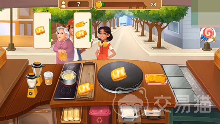 客人们人物形象的左边都会有一个绿色的竖条,这个竖条代表了客人的耐心程度,当绿条掉完之后,客人就会生气的离开。小伙伴们可以看到在自己的游戏界面右边有一个棒棒糖道具,在使用这个道具之后,摊位前所有客人的耐心值都会瞬间回满,这是一个非常好用的道具,为小伙伴们争取了不少时间,也提高了获得最高评级的可能性。