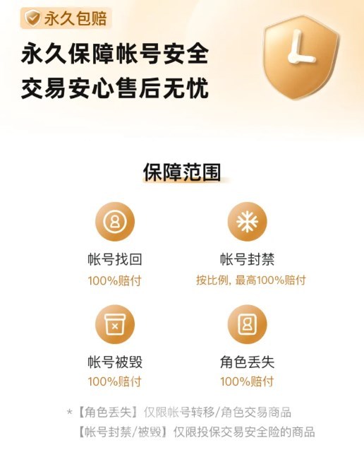 不少买号担心的一个问题就是怕找回,不愿意自己买来的号投入精力与金钱结果回头被找回帮别人打工,交易猫的“安心购”系列服务就可以帮助大家解决这个烦恼。其中“永久包赔”就是很多买家最看中的,购买那些有“永久包赔”服务支持的商品,如果被找回可以100%佩服。