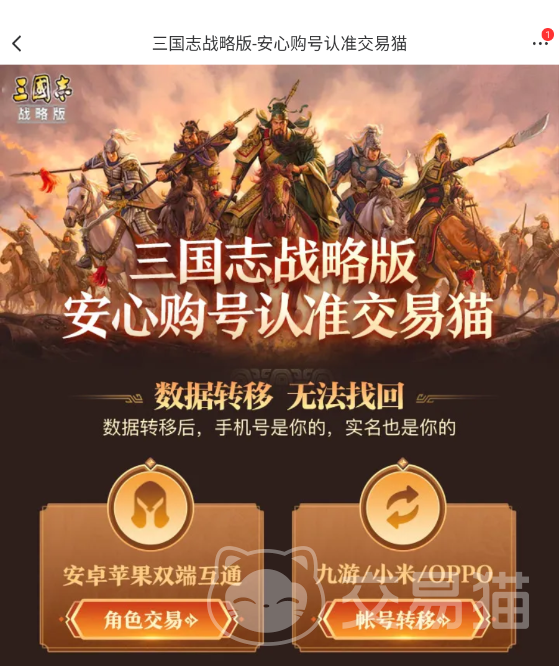 部分游戏还支角色交易,以灵犀旗下的三国志战略版为例,可以直接对账号中的角色也就是武将进行交易,数据直接转移不用担心找回。