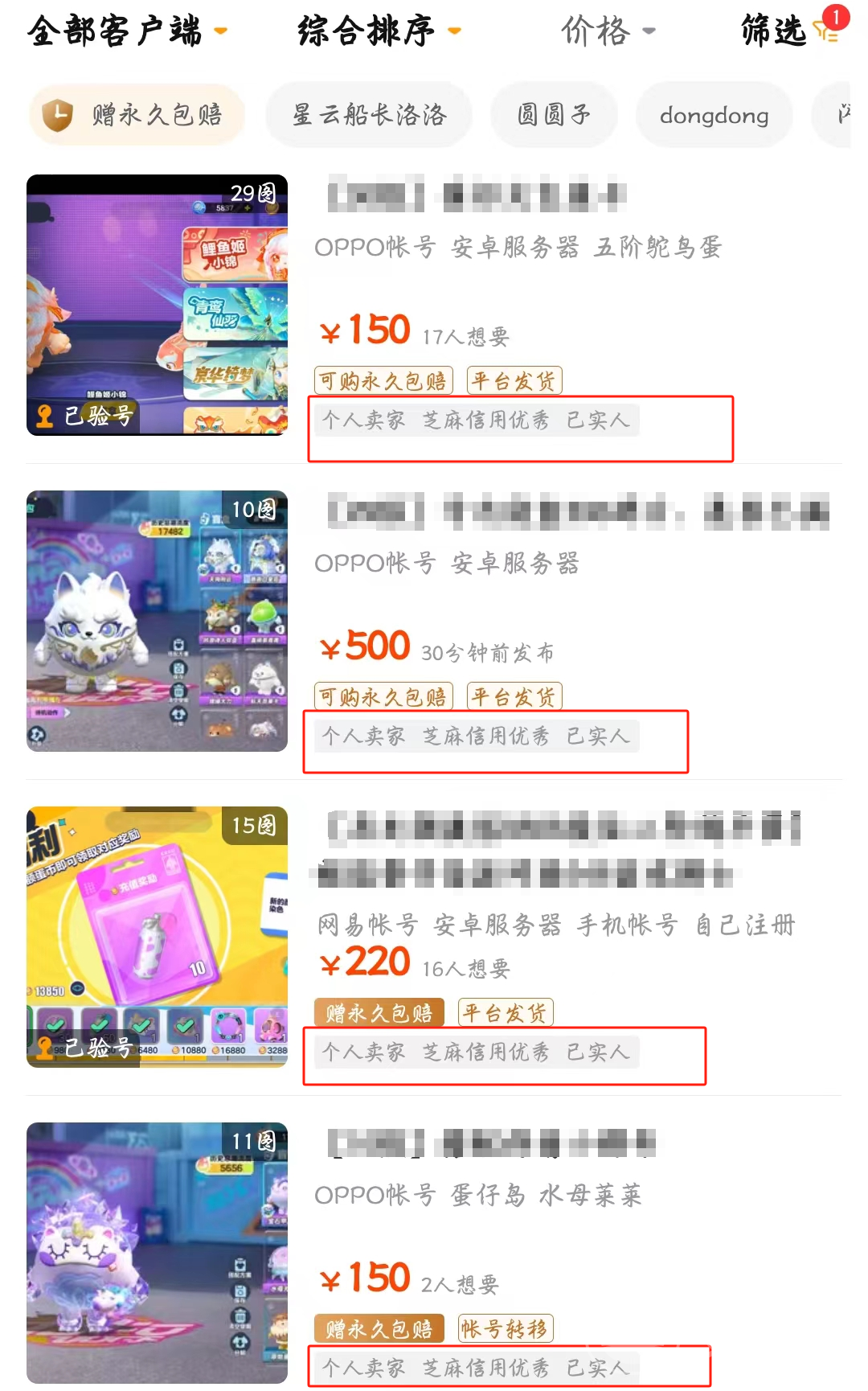 在买账号的时候,大家是可以筛选选择芝麻信用度比较高的卖家的,这些信用度比较高的平台会打上相应的标签,一般来说这种类型的卖家是会比信用度低的好的,毕竟绑定的是支付宝的芝麻信用度,此外,还有永久包赔服务,大家可以选择性的进行购买。