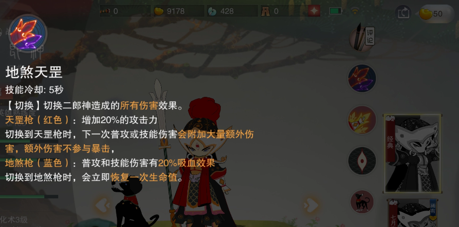 首先了解一下它的特殊被动,二郎神是有个忠诚宠物哮天犬的,这个被动就是哮天犬自动会对周围敌人发动攻击,英雄有限,伤害随着等级提升,这样的话二郎神就有输出、有肉(狗输出)的多种玩法。一技能地煞天罡:他可以在红枪和蓝枪之间切换。红枪能让他的下一次攻击或技能打出更猛的一击,而蓝枪则让他从攻击中恢复生命,非常适合紧急情况下的自救,cd5秒。