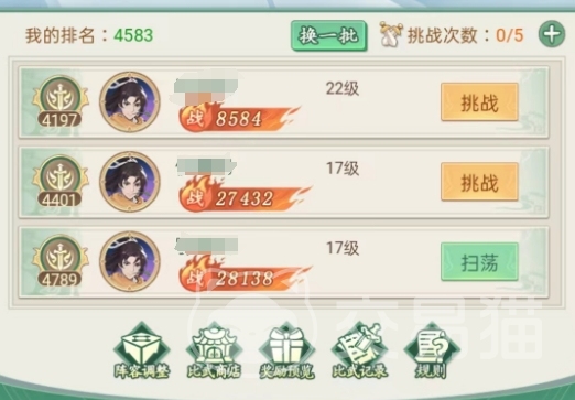 玩家自行组队,随后查看目前的排行榜可以挑战的角色,根据自己的战力来挑战,挑战成功排名即可前进,不论是失败还是胜利都有声望数值可以拿到,这也是目前大家拿到声望数值的唯一途径,如果大家的战力比上面玩家的战力高很多,且之前曾经打败了该玩家的话,那么就可以直接通过扫荡的方法来快速获取声望值,但是这种方式以及挑战失败获取的声望数值都会比挑战胜利来的少。