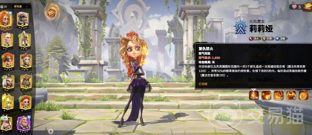 然后为大家介绍的英雄是莉莉娅。这名英雄的定位是法师,可以对敌人造成大量的魔法伤害。并且攻击范围特别大,可以对多个敌人进行攻击。这种英雄属于战斗中绝对的输出主力。当然,这个英雄的缺点也是很明显的,就是技能cd非常长。导致这个英雄并不能持续输出。所以玩家在选她时,一般都会选其他英雄搭配使用。保证莉莉娅在无法使用技能时候的安全。