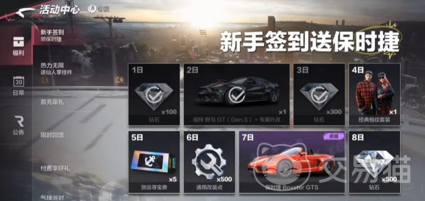 如果你是月卡党,只需58元的车手令就可以得到玛莎拉定,然后第二天领取富特野马,再算上任务给的钻石,就可以拥有两台A车了。如果还能在这个基础上再加一单,那么活动中心有一个福利限时反馈,每天6元能领到1个货运券,按连续买5天算,就是300点加5张货运券。
