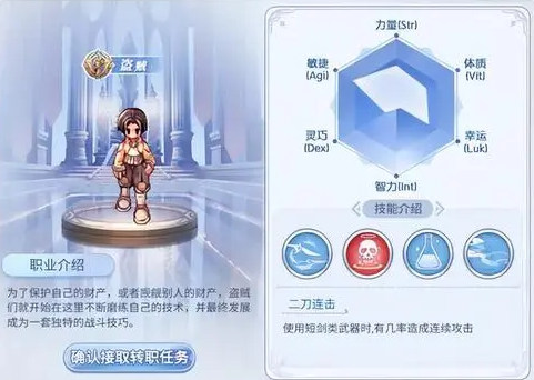 之后是第三个职业盗贼的加点,游戏中盗贼在加点时需要给敏捷和力量放在首位,这是因为盗贼是刺客型的职业,对于这一类职业,其主属性是一定为敏捷力量的,因此需要优先点满,点满之后盗贼就会获得超高的爆发力和机动性,也就是暴击和攻击力会得到提升。在提升之后,他的技能就比如潜行技巧、疾风步这类技能的效果会得到加强,在加强后技能的收益会变的非常高。
