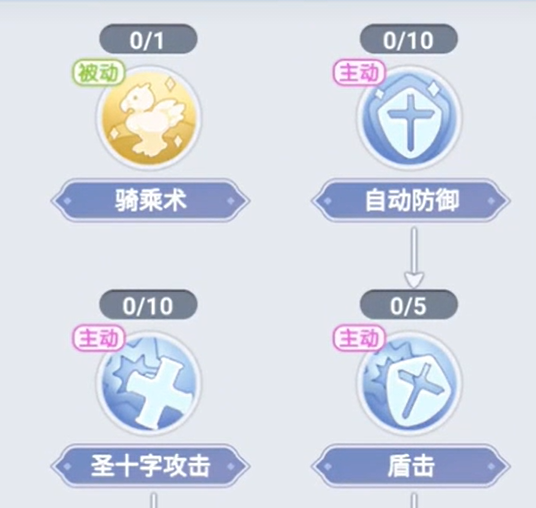 接下来介绍的几个十字军的技能都是属于输出技能。在这里说明一下,十字军的输出技能基本上都是以圣属性为主。这个属性对于一般属性的敌人效果不是很好。但如果是暗属性,不死属性和恶魔属性的敌人却有着奇效。这里推荐玩家们可以将圣十字审判这个技能给点满,因为这个技能本身是属于群体范围的输出技能,同时它还可以对克制的敌人造成失明的效果,总体效果来说还是非常不错的。