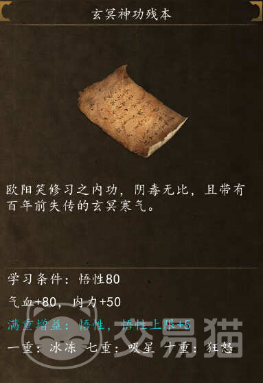 玄冥神功残本,是侠客风云传前传中的一个关键道具。它不仅代表着一门强大的内功心法,也是玩家们探索游戏故事的重要线索。这份残本中记载的神功,是欧阳笑在多年的江湖历练后所创,蕴含着他对武学的理解和对内力运用的独到见解。