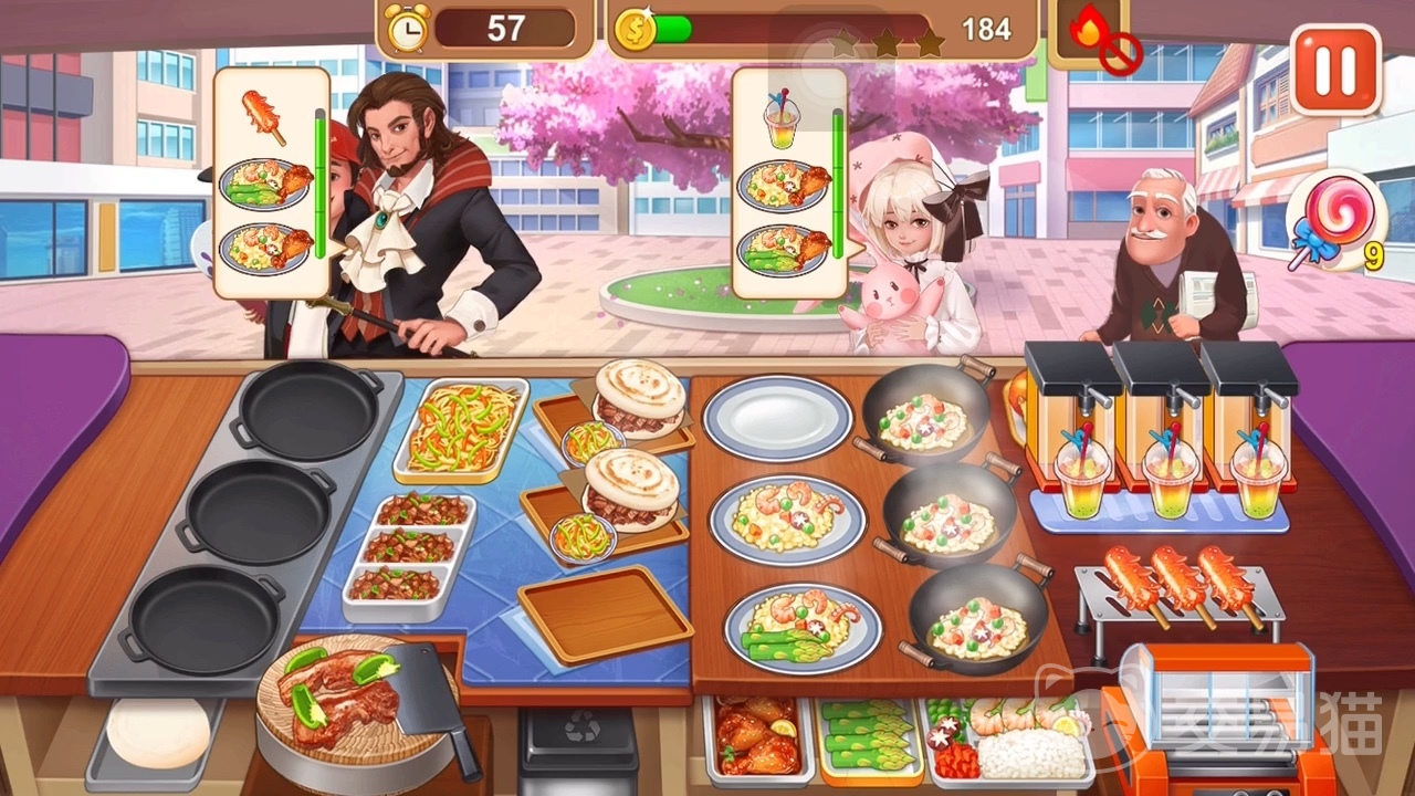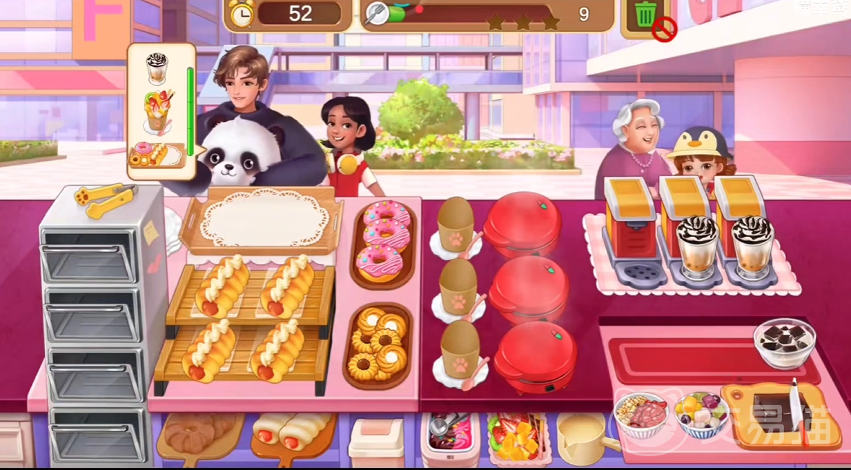 首先能玩到这一关卡的小伙伴们在手术方面一定都是毋庸置疑的,但在进入这一关之后,小伙伴们将会明显的感觉到有些力不从心,因为需要同时操作的东西非常多,无论是面包、鸡蛋仔还是龟苓膏都是需要动手加工的。因此小编建议大家最好是带一个自动给客人上菜的道具,这样可以轻松很多。同时也不要忘记多带几个棒棒糖,以提升客人的耐心值。