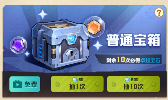 大家点击主页中的【商城】,第一个宝箱的话,属于【宝石宝箱】,大家可以在这个宝箱中,开出一些传说宝石;传说宝石目前是游戏中阶级比较高的宝石了,而且这个宝箱还有保底机制,大家去进十连抽的话,是一定可以获得一个蓝色的卓越宝石的!不过这个宝箱有一点就是宝石是随机的,没有办法指定,是推荐大家进行氪金的很重要的地方!