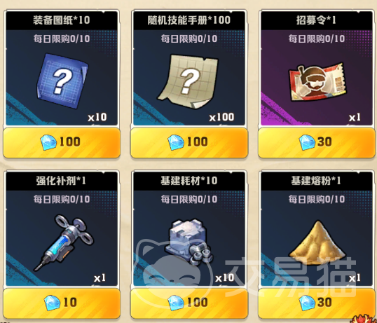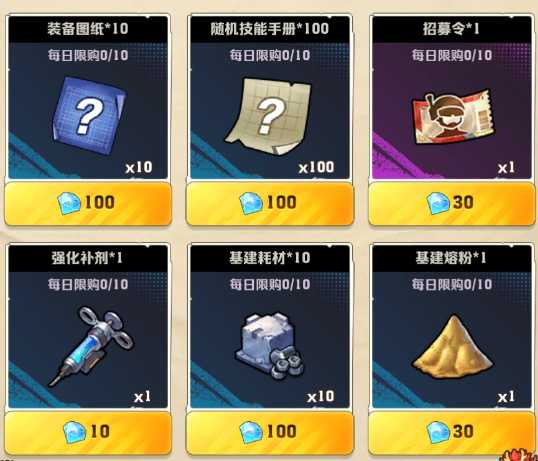 第三个氪金的地方则是【资源】类的,同样大家在商城中可以看到资源类的选项,其中的【装备图纸】是小编第一个推荐的,每天可以购买十次,花费100个钻石,非常的划算,装备图纸是随机的,使用后,是会随机获得一个部位的装备图纸的!而且想必在巡逻车上获取的话,性价比要高很多!