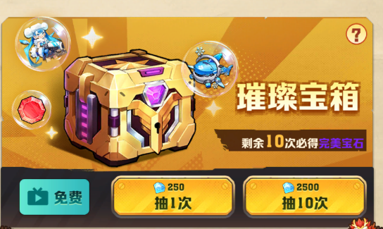 第二个宝箱的话,同样是属于宝石类的,但是这个氪金的数值就比较大了,第一个的话,使用500钻石就可以进行十连抽,而这个【璀璨宝箱】则是需要玩家们花费2500个钻石才可以抽取十次,都是非常不错的,大家可以按照自己心理的氪金价位去进行选择!