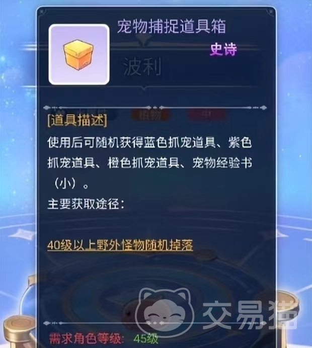 在这些掉落的宝箱之中,除了会有宠物之外,甚至也可以让玩家获取一些其他的武器和道具,或者是培养宠物的道具,不仅如此,如果刷的野怪达到了40级以上的话,将会随机掉落宝箱,这些宝箱里面有抓宠物的道具,有了这些道具之后,玩家也可以自己去捕获这些宠物。