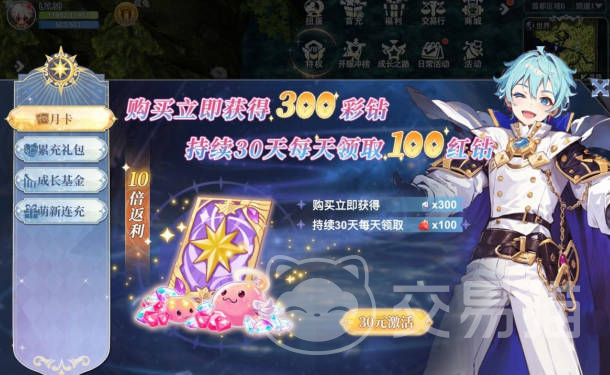 月卡的话也比较推荐充值。将这个开通之后,立刻就能够得到300的彩钻,而且在一个月之内每天都可以领取很多的资源,总共能领导3000的红钻,回报率还是相当可以的;接下来是成长基金,购买之后可以马上得到880的彩钻,还有8800的红钻收益。
