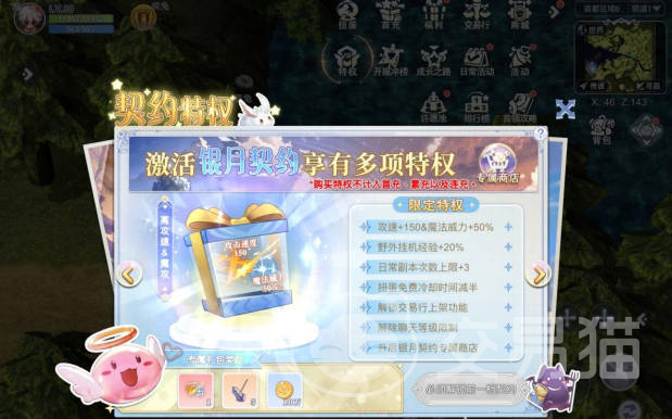 首先推荐大家去买契约特权,尤其是对于微氪的小伙伴来说,购买这个契约的话,其实性价比是超高的,首先它可以直接将攻速以及魔攻进行加成,其次还能将交易行上架的权限开启,这样大家可以更好的将无效的物品给转化成有效的彩钻资源,还有专属的折扣商店可以去买打折的商品。