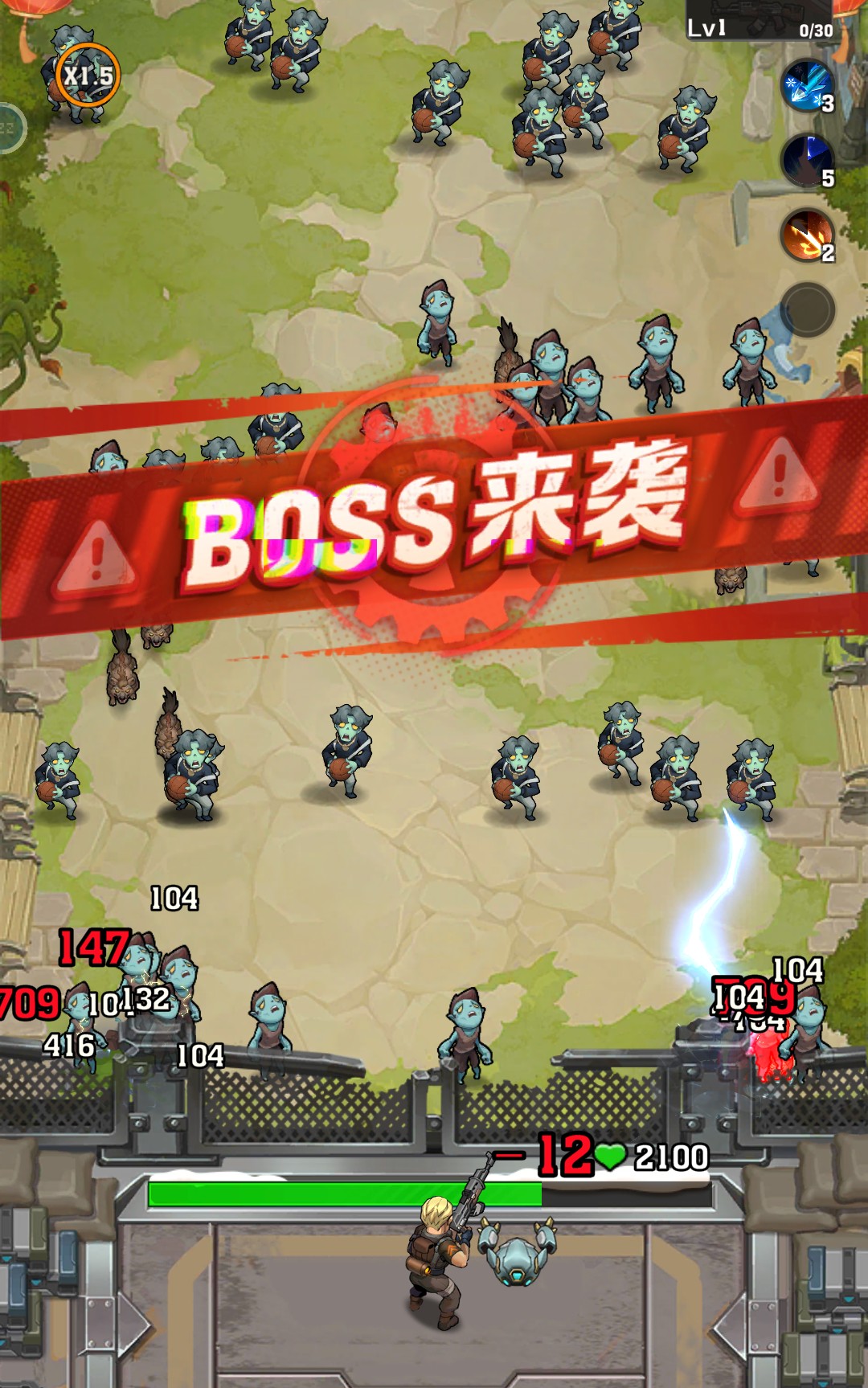从第四关开始,关卡内便会出现精英怪的身影,且精英怪在出现时会有“BOSS来袭”的警告闪烁,随后精英怪就会从上方加入战场。每关的精英怪都不一样,但相同的是它们头上都会直接显示血量数量,并且在体型和形象方面也与普通僵尸有着较大的区别。