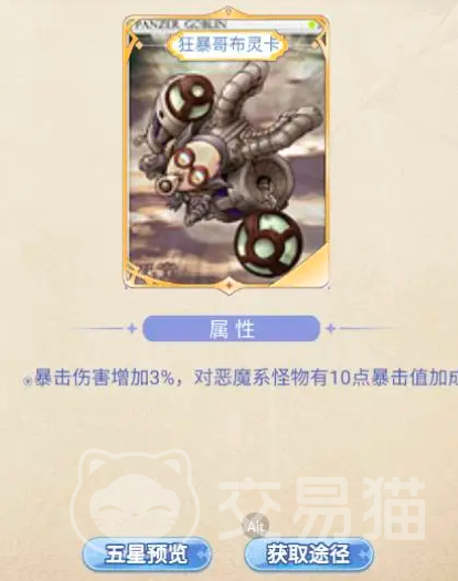 游戏中卡片的品质也是有不同的,其中品质最高的是金卡,其中有哥布林系列的卡片,还有巴风特卡以及死灵卡等等。首先介绍的是哥布林系列的卡,分别有直升机,狂暴,弓箭,喷射,犬妖,大家面对不同怪物的时候,能够增加的暴击值是不同的,挂机的时候就可以用这些卡片,而适合的职业则是大家都很喜欢的弓箭手以及盗贼,所以如果获得这种暴击类的卡片就可以给这两个职业搭配起来。