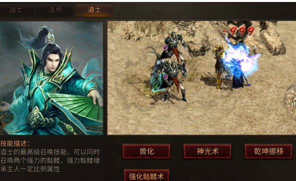 4. 兽化:这就是道士相对比较强大的技能,一旦在开启兽化状态之后,可以提升最终的伤害以及宠物的攻击速度,另外还可提升人物的最终伤害,魔法命中以及生命上限。