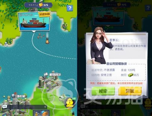 玩家还要学会进行航海贸易,这可是游戏中最赚钱的路子。游戏中不同国家的每日热销货品都是随机的,玩家们要自己分析最佳贸易路线,比如A地的特产是苹果,热销货品是铁矿,而B地的特产是铁矿,热销货品恰好是苹果,那么这便是最佳贸易路线了。