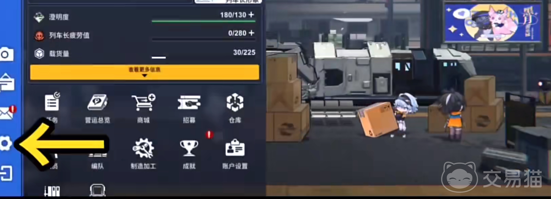 首先打开雷索纳斯游戏以后在默认页面点开左下角的玩家头像,进入个人资料界面后最左边有一排蓝色的方框,我们选择框内倒数第二个设置按钮点击进入。