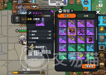 在这类游戏里,想活下来当然需要一把给力的武器,今天小编就为大家优先介绍一下游戏里反馈较好的武器,我们先来看看几款紫色分类的武器吧,第一款,一把叫雷电斩的长刀,出售价20000exp,此武器可以打出的技能为雷光系,即挥刀就可向前方瞬间移动,所经过的地方目前全体获得雷电伤害,它的攻击间隔为0.56;第二款是冰灵巨剑,冰攻击属性+150,技能名为冰封裂隙,可以向目标放出冰柱攻击;