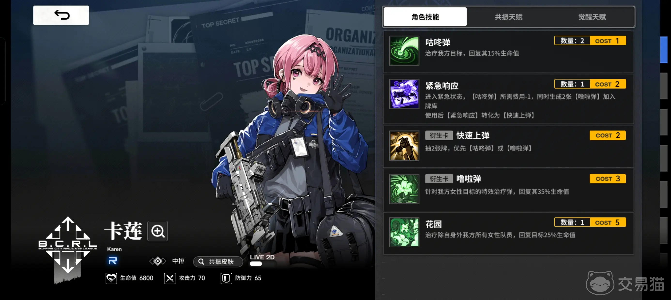 卡莲是一个五星角色,在长相上面是比较甜美温和的一个女孩子,她主要的能力其实和外表也是比较符合的,她温馨的笑容会给队友带来治愈的效果,主要就是通过自身的技能来提高对队友治疗的能力,让队友的生存能力更近一步。