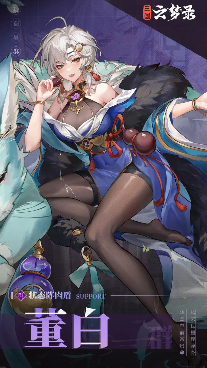 武将推荐四:董白,这个角色也是前期值得去培养的,虽然是一个紫色的武将,但是前期用起来还是比较舒适的,比较适合放在副C的位置来使用,不过也不用花费太多的资源,够用就行,有合适的了再将她替换掉。
