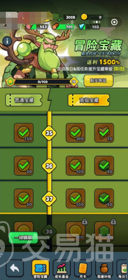 对于新手来说,玩家应该盯准每天的免费大礼包和观看广告的奖励,在观看完毕之后可以获得绿钻奖励,虽然数量并不多,但是对于新手来说已经足够了。游戏里面还有每日任务和每周任务需要完成,完成后会奖励一部分的金币和珍贵资源。在游戏的初期,资源的积累是很重要的,像肉块木头这种基础资源必须要丰富一些,所以前期新手最好选择具有群体伤害的英雄,这显得很重要,前期刷资源能够用得上。