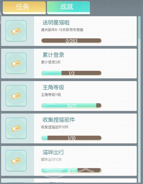 利用游戏中的奖励系统,每天猫咪会有四次来找玩家要吃的或者玩的,完成这些小任务后,玩家可以获得进度条上的奖励。此外,猫咪偶尔会有特殊的需求,比如拉粑粑,满足这些需求也能获得猫草,这是另一种可以用来升级房间的资源。